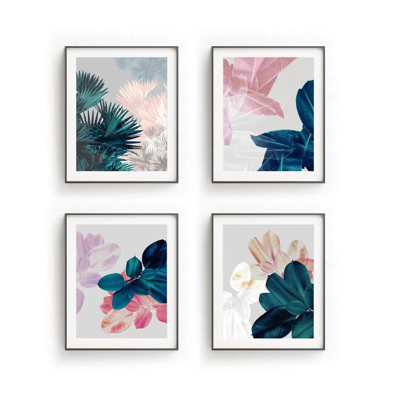 Тропические фотообои и принты, серая стена, ботаническая Картина на...