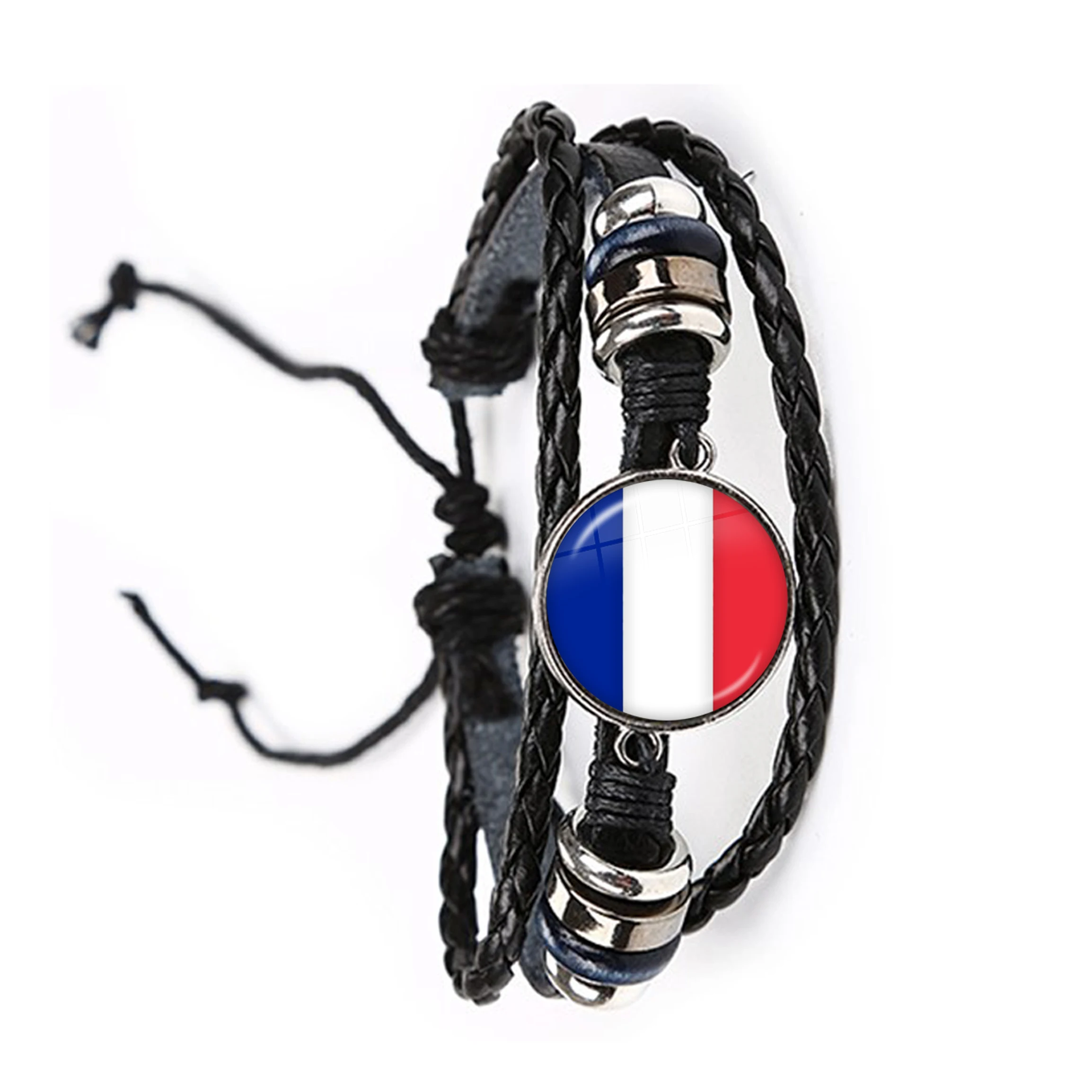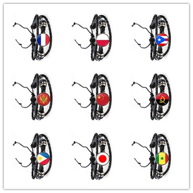 Кожаный браслет с национальным флагом, Франция, Польша, Пуэрто-Рико, Черногория, Китай, Ангола, Сенегал, Филиппины, Япония, браслет для женщин и мужчин