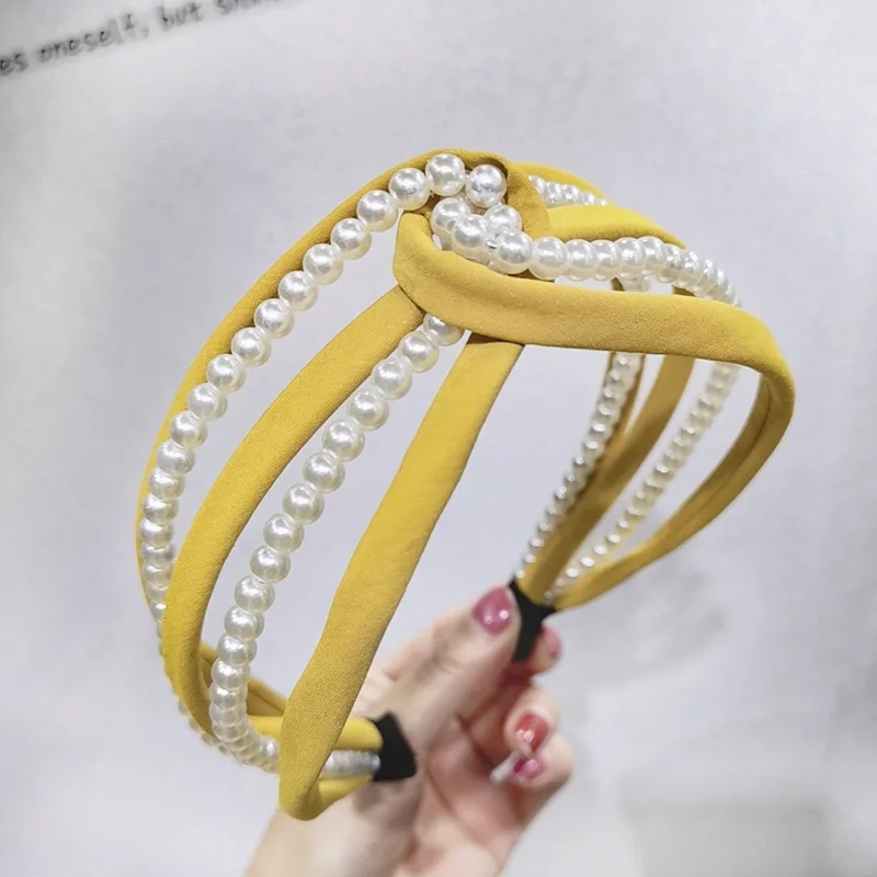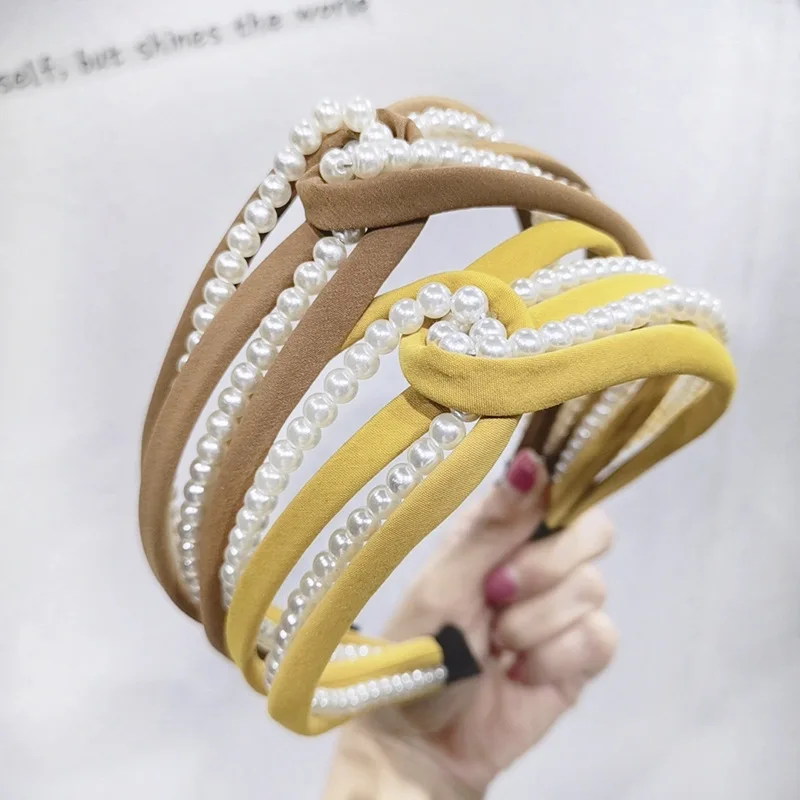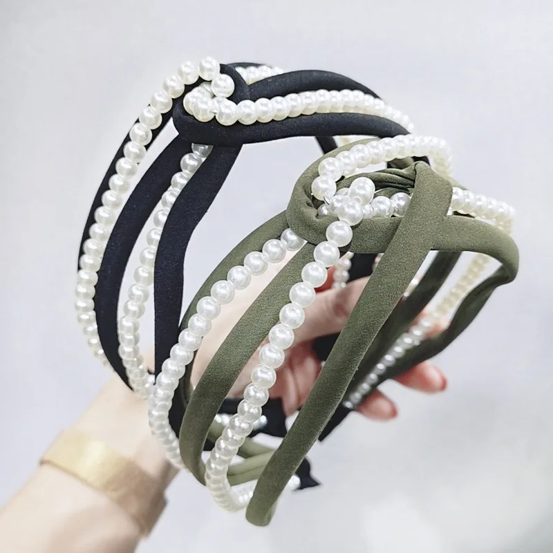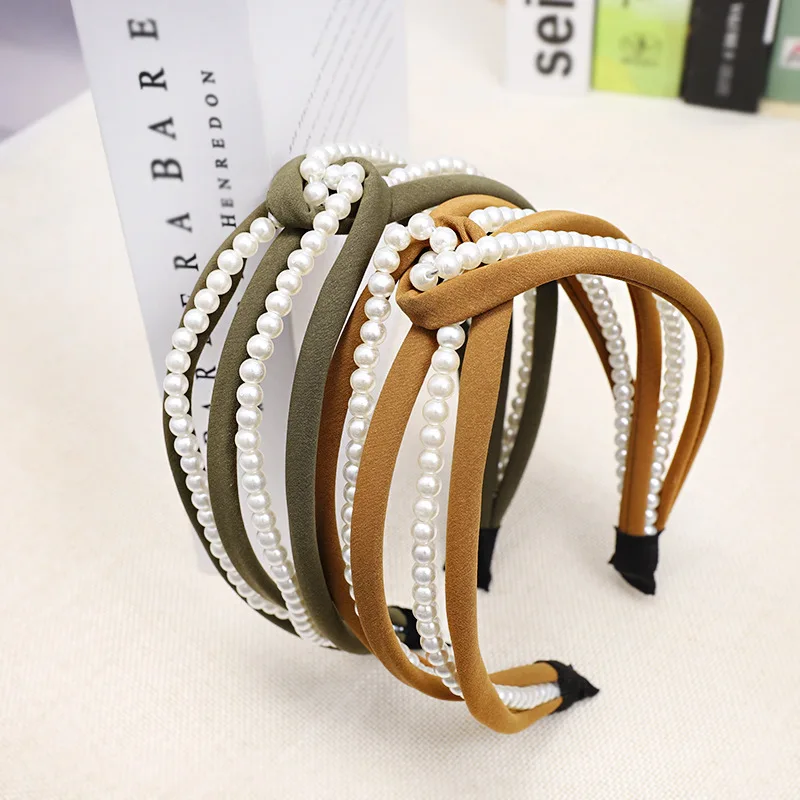 Красочные Широкие преальные повязки с узелком для женщин, аксессуары для волос, Корея, банты для волос, Цветочная корона, жемчужные повязки для волос