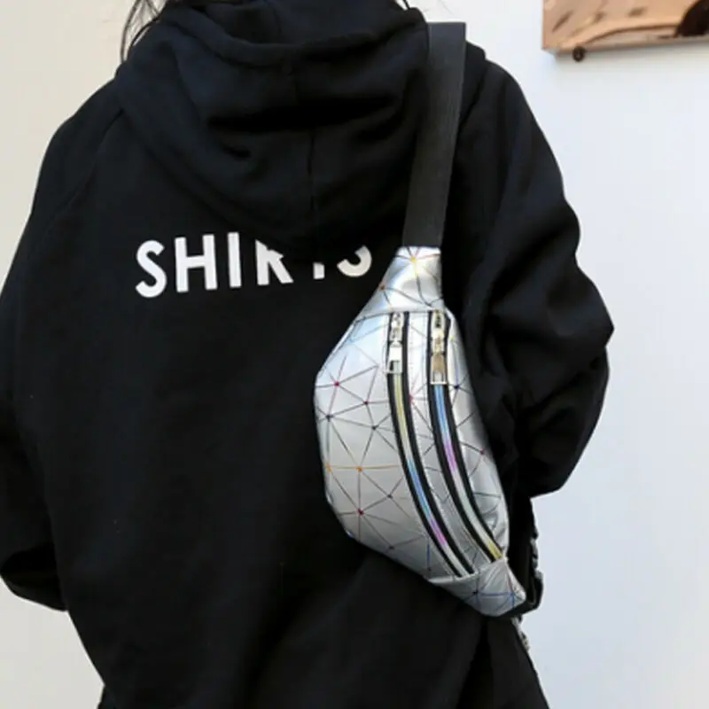 Разноцветные поясные сумки женские серебряные поясные сумки Мужские Женские поясные сумки черные геометрические поясные сумки лазерная нагрудная сумка для телефона унисекс