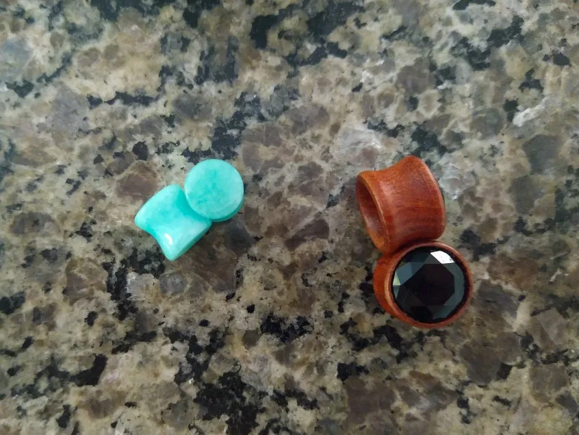 Плюги красивые, однако мне не удалось установить их только один раз, диаметр слишком большой, чтобы вставить их для отверстия 10 мм в ухо, к сожалению.