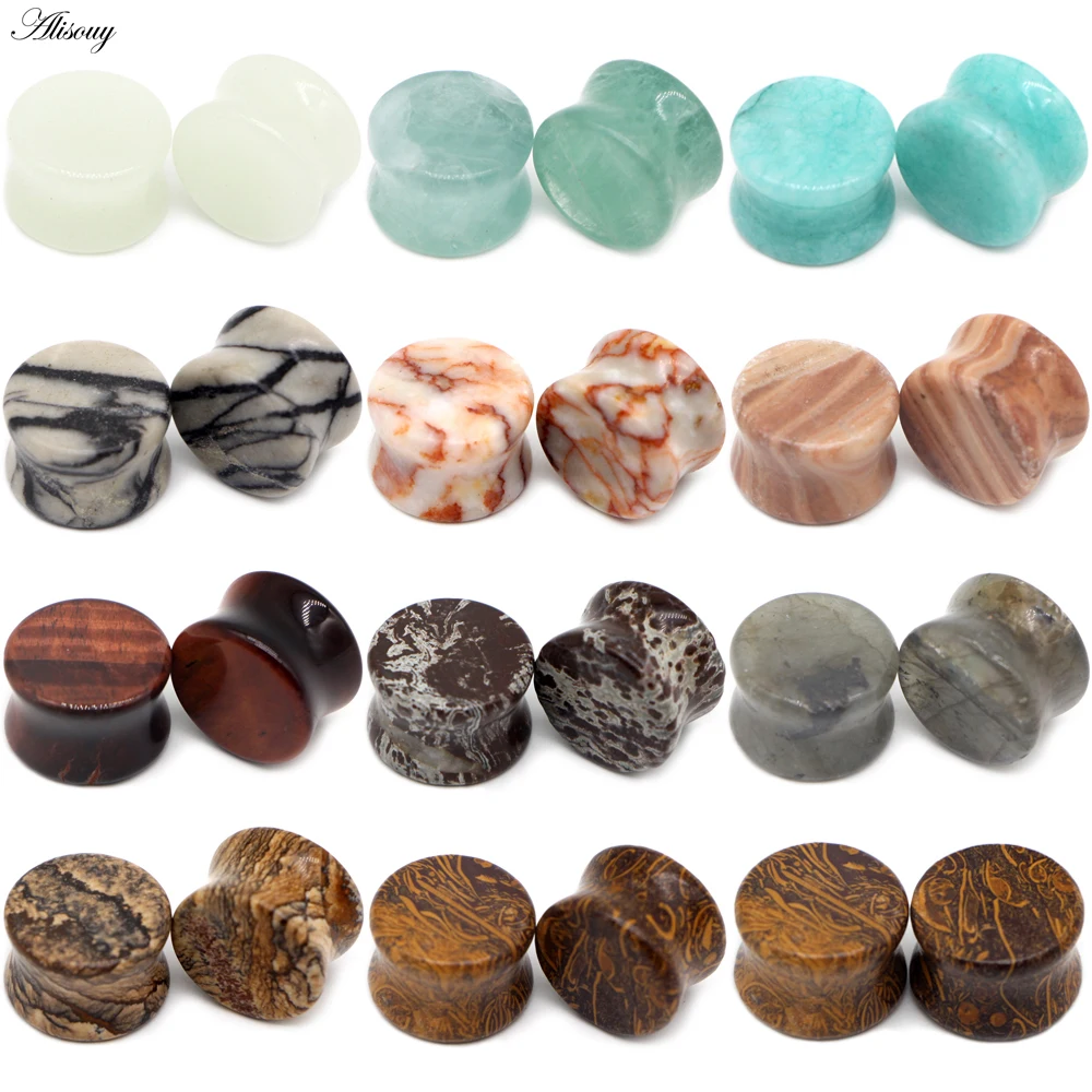 Заглушки натуральные серьги из органического камня для пирсинга, 6-16 мм, расширители для ушей, 2 шт.