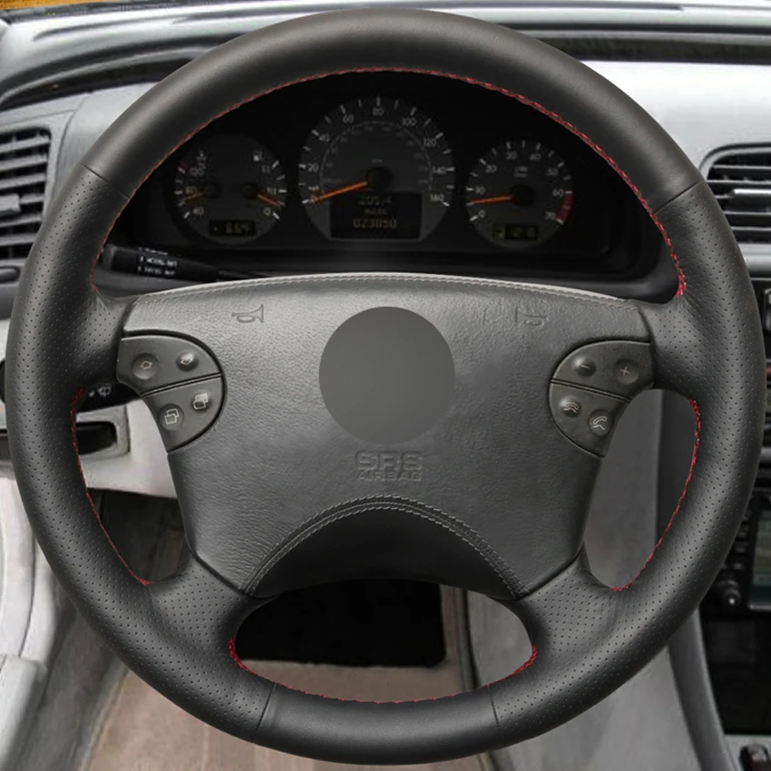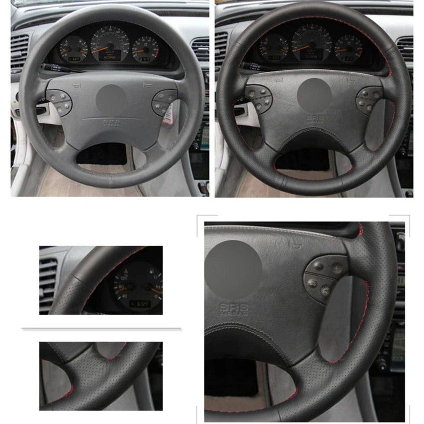 Черная искусственная кожа, прошитая вручную чехол рулевого колеса автомобиля для Mercedes-Benz W210 E-Class E320 2000 2001 2002