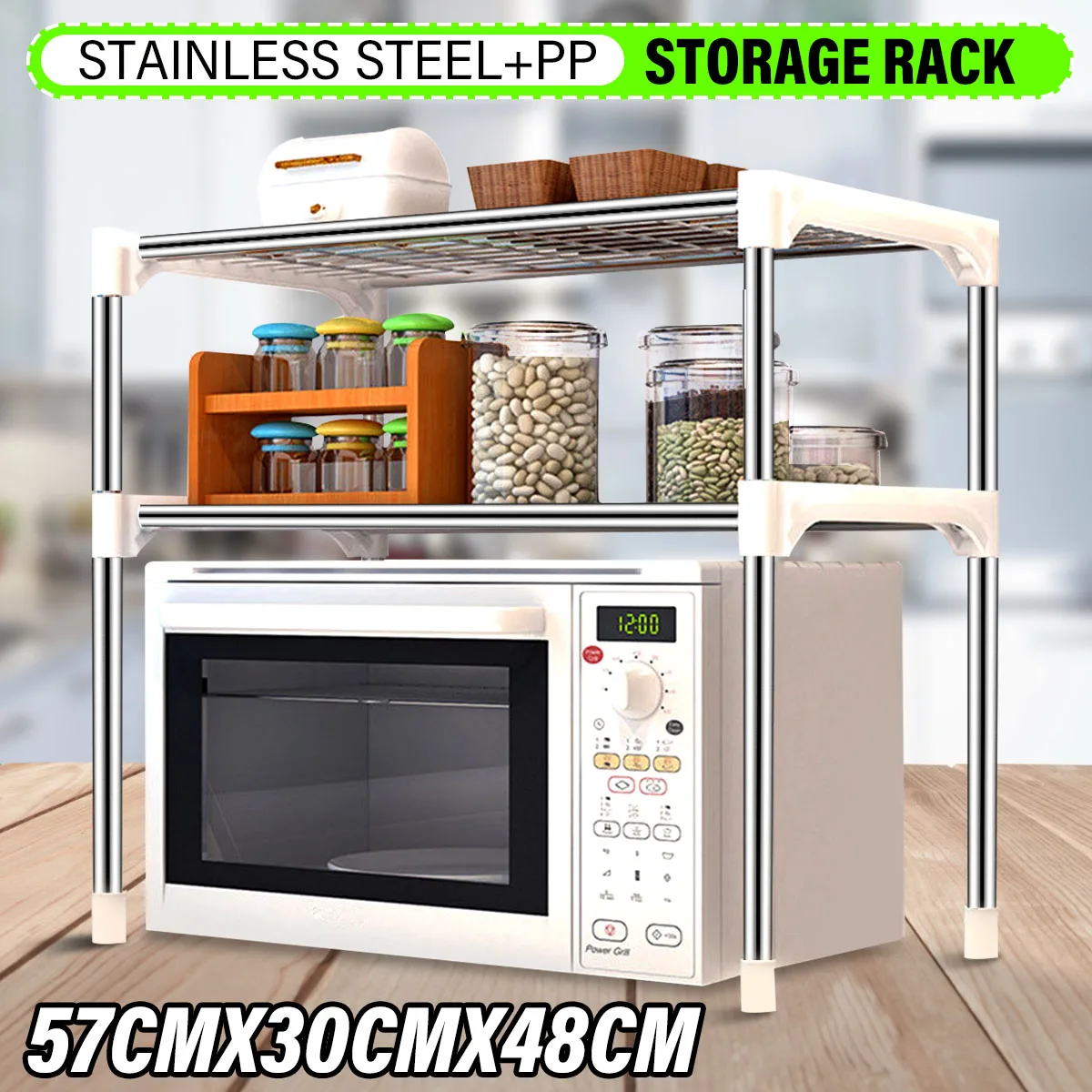 2-ярусная регулируемая полка для микроволновой печи из нержавеющей стали 304, стоячая многофункциональная полка для хранения для кухни и ванной