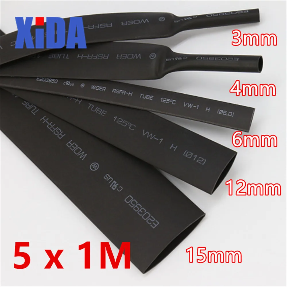 Термоусадочная трубка черного цвета 2:1, 1 м, 5 шт., 3,04,06,012,015,0 мм