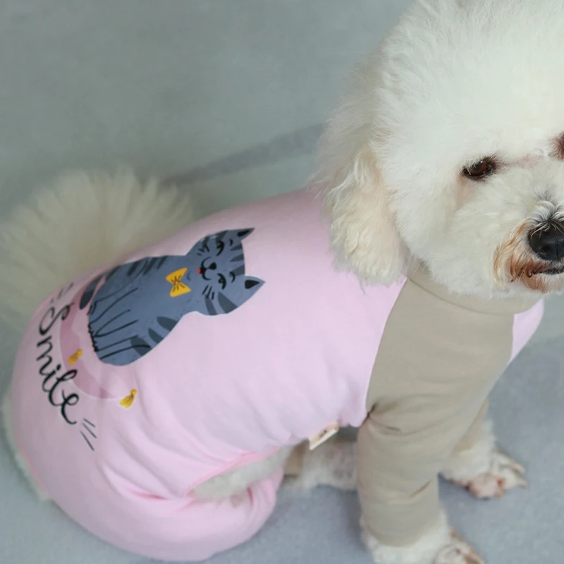 Комбинезон для собаки, растягивающийся хлопковый комбинезон, четыре фута, одежда для щенка, домашняя одежда для маленьких собак, пижама, толстовка с длинными рукавами, пудель