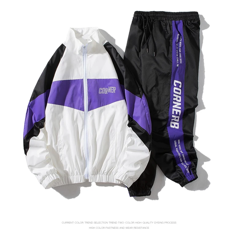 Мужской спортивный костюм в стиле хип-хоп, комплект из 2 предметов, куртка и шаровары, ABZ551, 2021