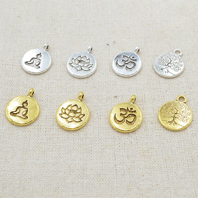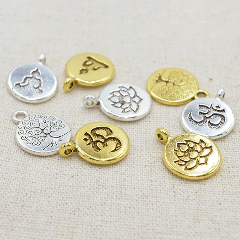 Подвески из металла, с гравировкой в виде лотосаДерева Жизни, 10 шт.лот, 15 мм