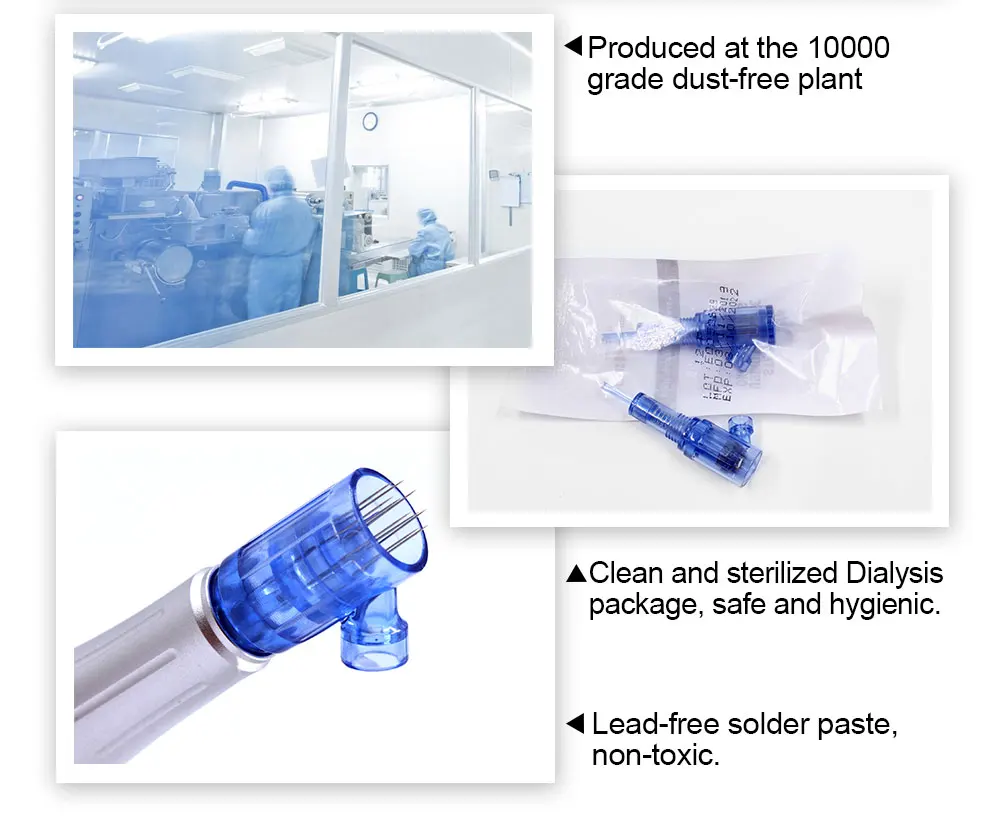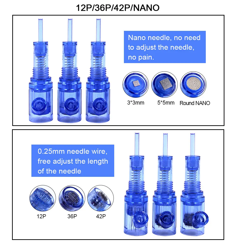 1.316L заказной игольчатый провод, острый и гладкий2. Иглы выбегают прямо и стабильно3. Пластиковая оболочка медицинского класса4. Стерилизованный EO газом5. Чистый и стерилизованный пакет диализа, безопасный и гигиеническийОсобенности:1. Мягкий и безболезненный наконечник2. Нано-технология, неинвазивная3.100% высокочистый монокристаллический кремниевый чип, способствует поглощениюПрименение:12PIN: против акне, ремонт шрамов, удаление растяжек36PIN: против морщин, увлажнение, лифтинг, удаление веснушек42PIN: против акне, против морщин, увлажнение, лифтинг, удаление веснушекКруглый нано: подходит для захвата тотала, инъекции питательных веществ, МТС, против морщин, лифтинг, удаление веснушек, уход за днемКвадратный нано: подходит для нежной кожи вокруг глаз, красной крови, лифтинга и ремонта, удаления веснушек, ежедневный уход