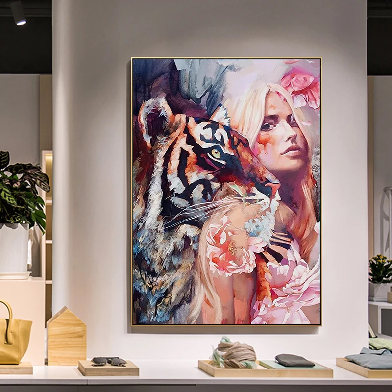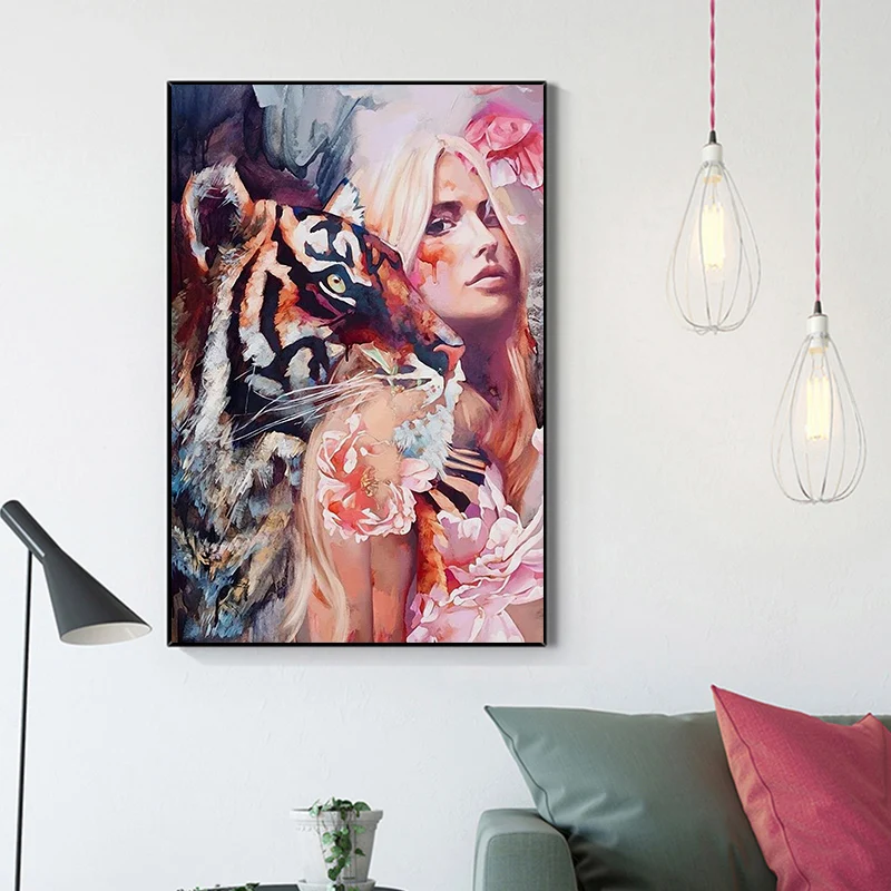Красивые Животные тигр цветок абстрактная декоративная картина черный белый модный плакат Скандинавская настенная Картина на холсте Современный домашний декор