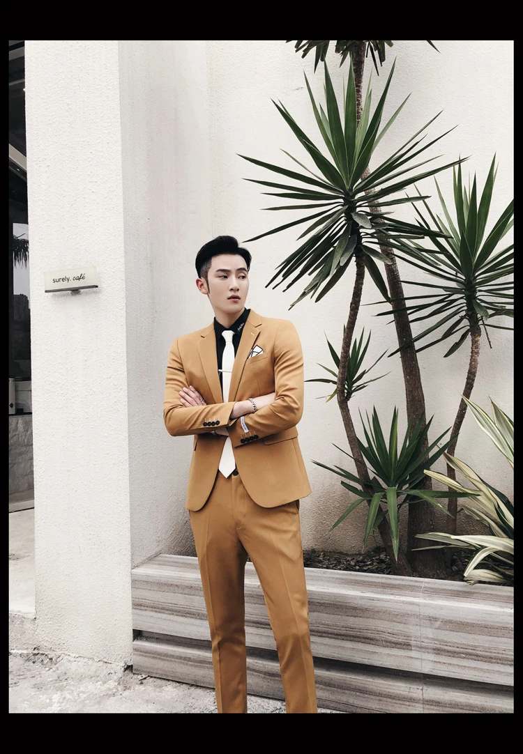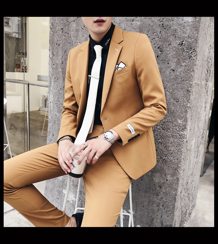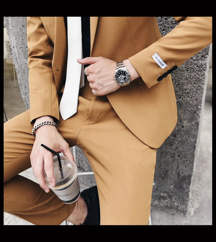 (Пиджак + жилет + брюки), новинка 2021, модный однотонный мужской п...