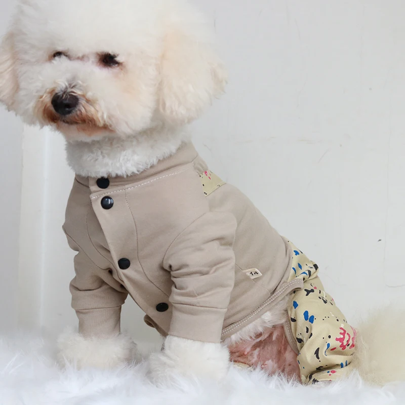 Комбинезон для собаки, стрейчевый хлопковый комбинезон из двух предметов, комбинезон, одежда для щенков, пижамы для маленьких собак, толстовка с длинными рукавами