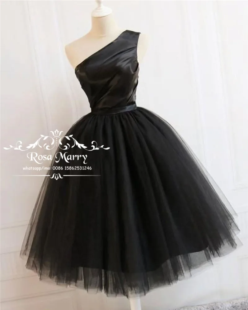 Сексуальные черные короткие дешевые платья 1950s для выпускного вечера, 2020 А-силуэта, юбка из тюля на одно плечо до колена, простые платья