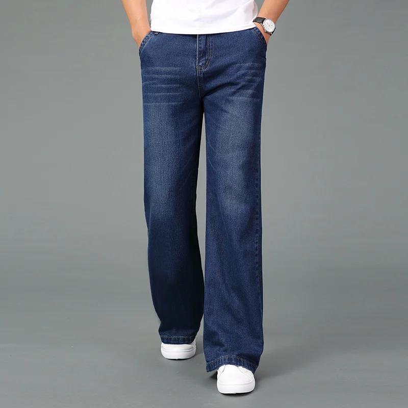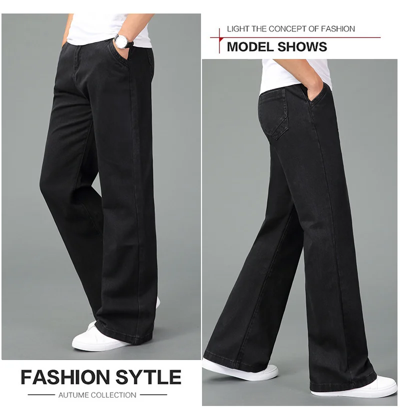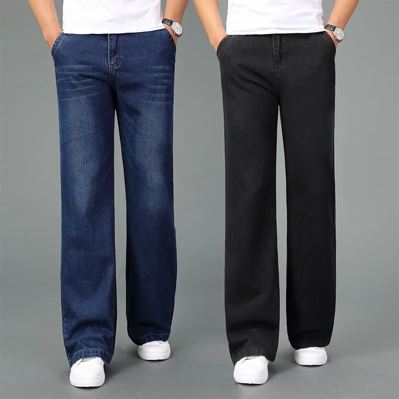 Бесплатная доставка, новинка 2022, высококачественные мужские джинсы с широкими штанинами на осень и зиму, деловые повседневные брюки, длинные брюки