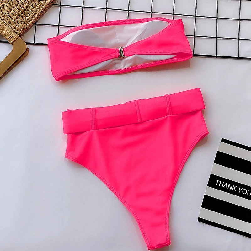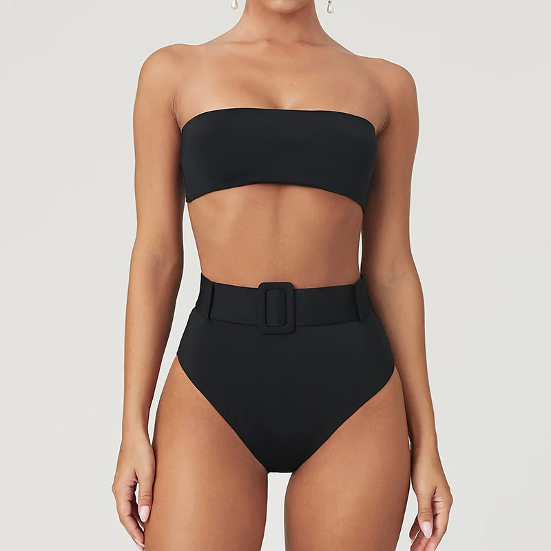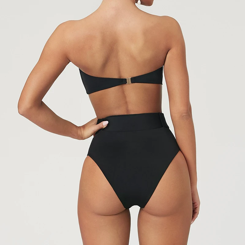 Соблазнительный комплект бикини 2022, купальник-бандо с высокими штанинами, женский купальник из двух предметов, бикини с высокой талией, женский купальный костюм, пляжная одежда
