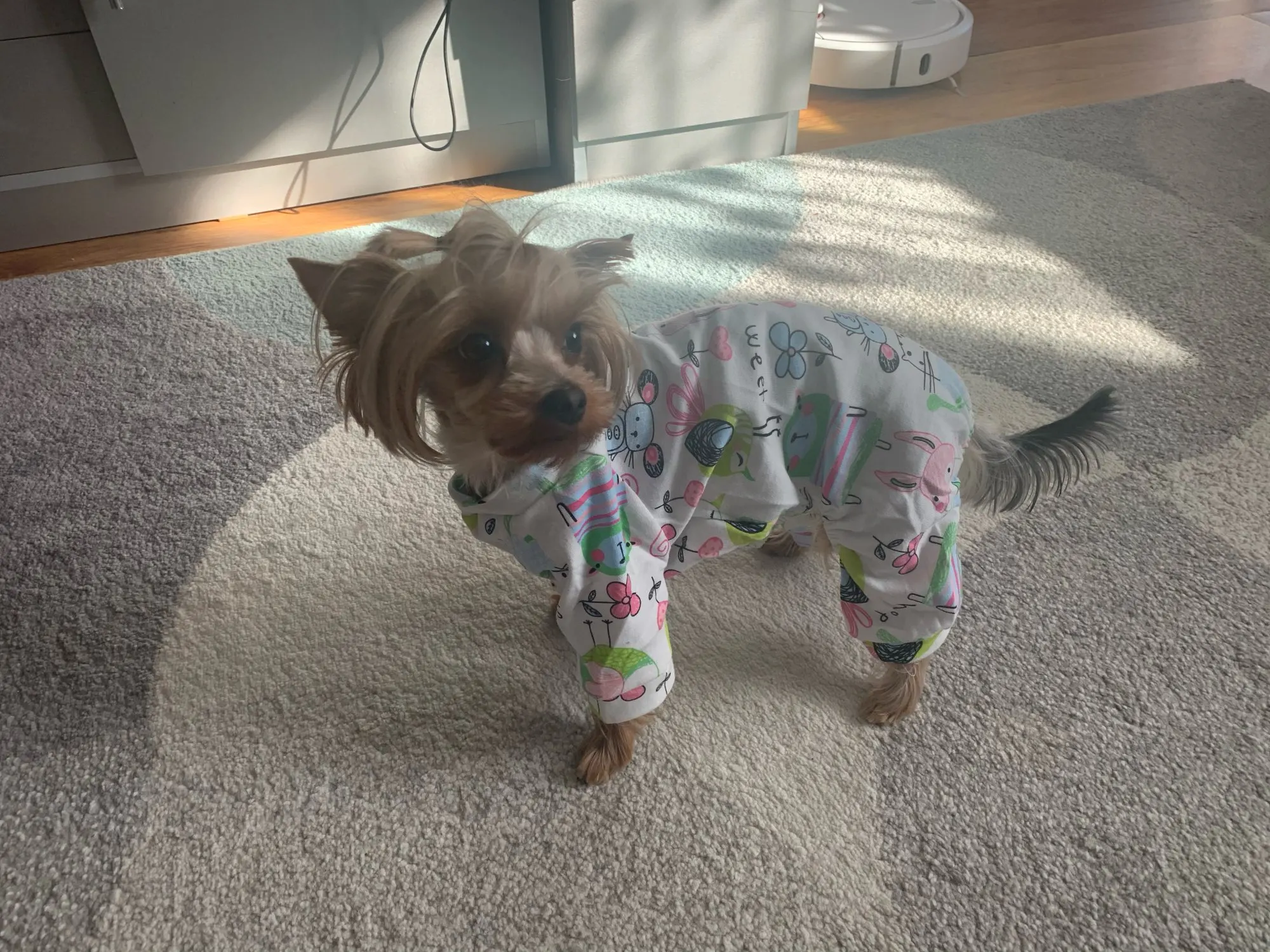 Спасибо большое. Пижама очень хорошего качества, пришла быстро. Размер L подошёл для русского той терьера весом 2900кг