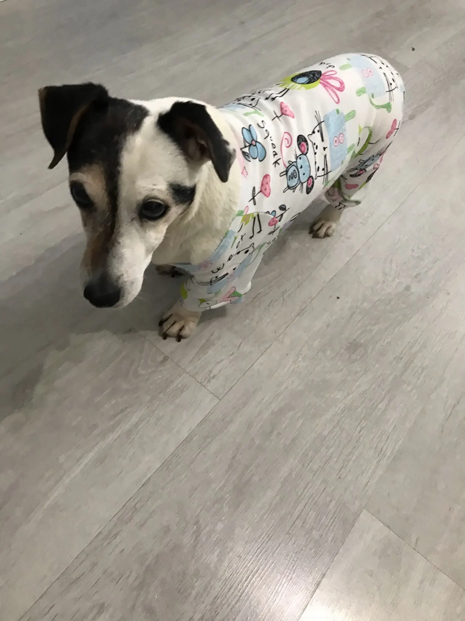 Восхитительная Пижама! К сожалению, они слишком большие для моей собаки, поэтому я должен заказать еще один для нее.