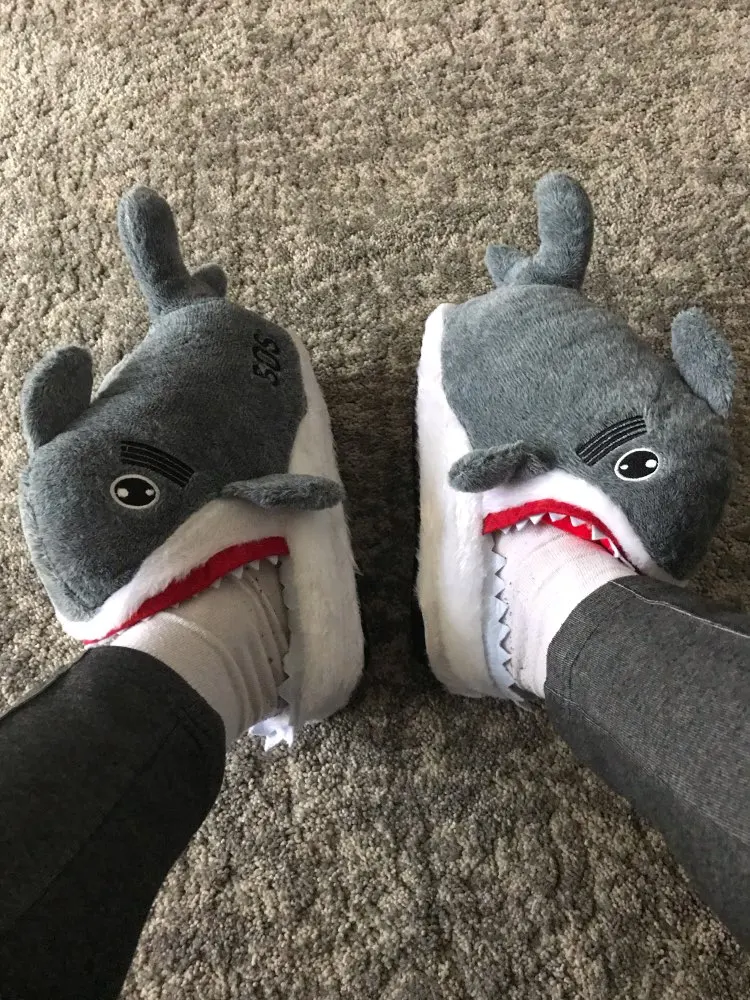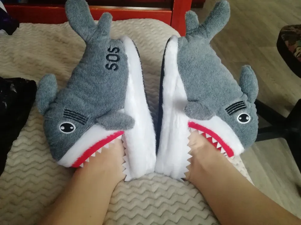 Тапочки домашние женские, плюшевые, с мультяшными акулами, 2022