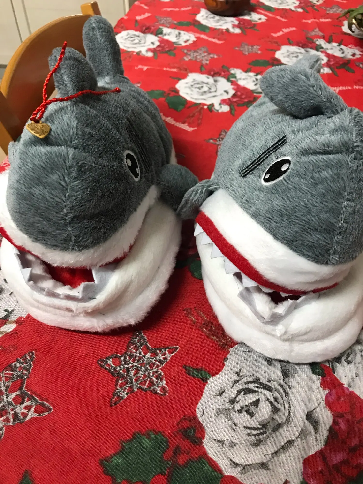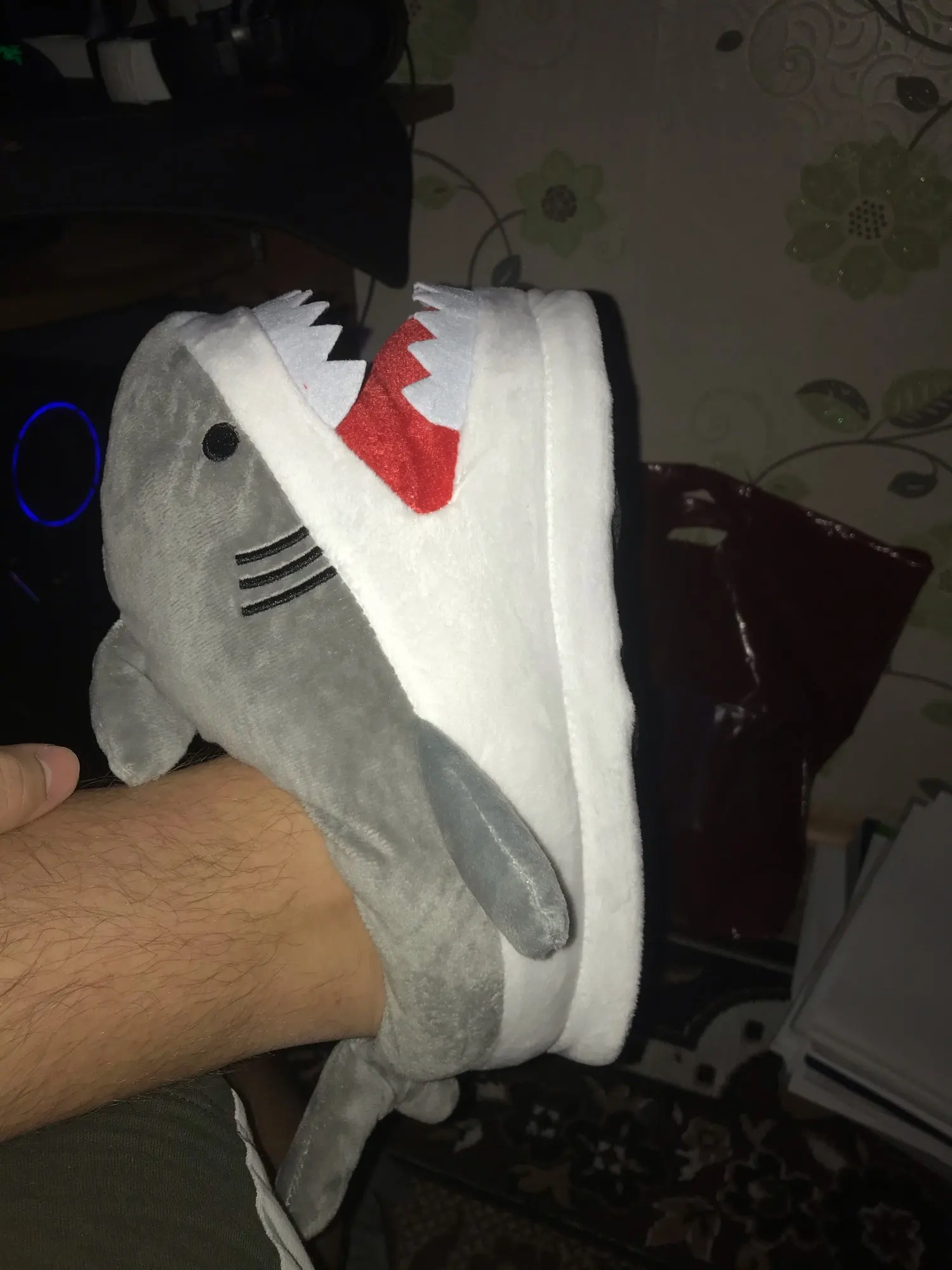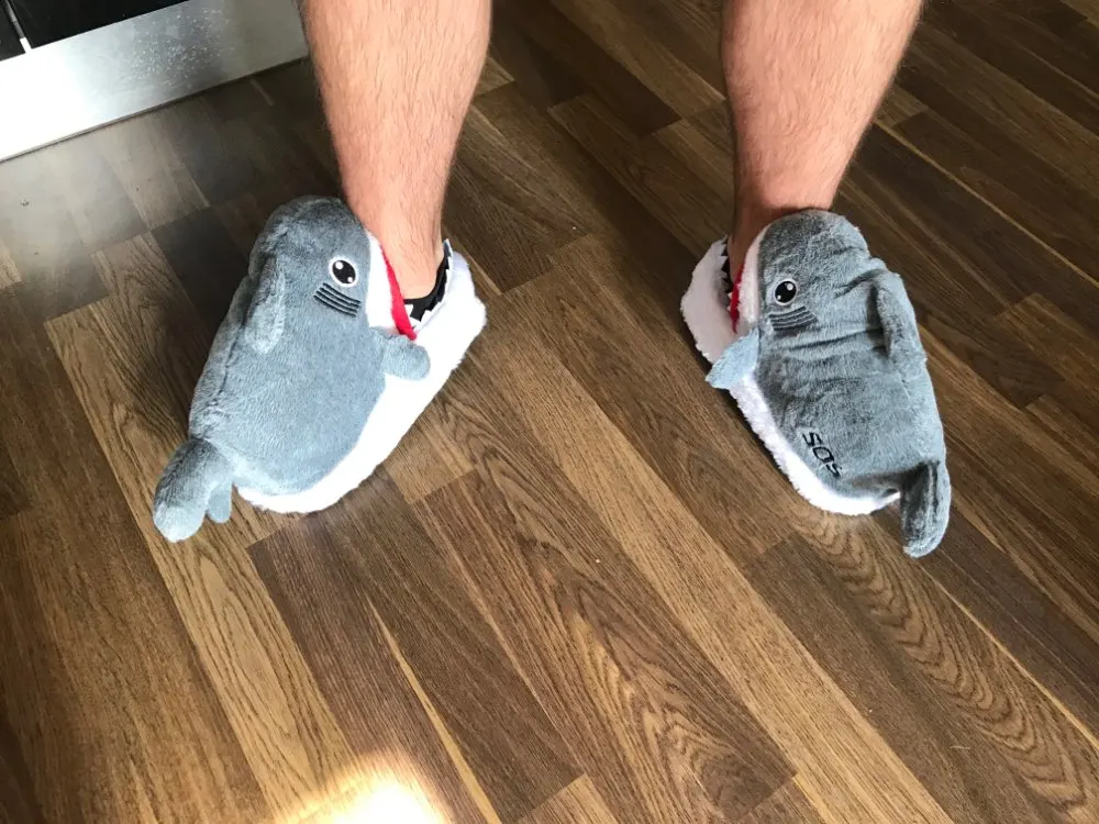 Тапочки okej, хорошего качества, мягкие и удобные на ощупь. Размер соответствует таблице. Для мужчин, но у него есть размер 44, 46, и тапочки были так согласны. Общая рекомендация, посмотрите, как будет модно в течение длительного времени. Я думаю, что все будет хорошо. Кошки любят играть в акулу с зубами, очень хорошая игрушка для домашних животных. Интересные и забавные тапочки. Маленькая девочка для отправки.