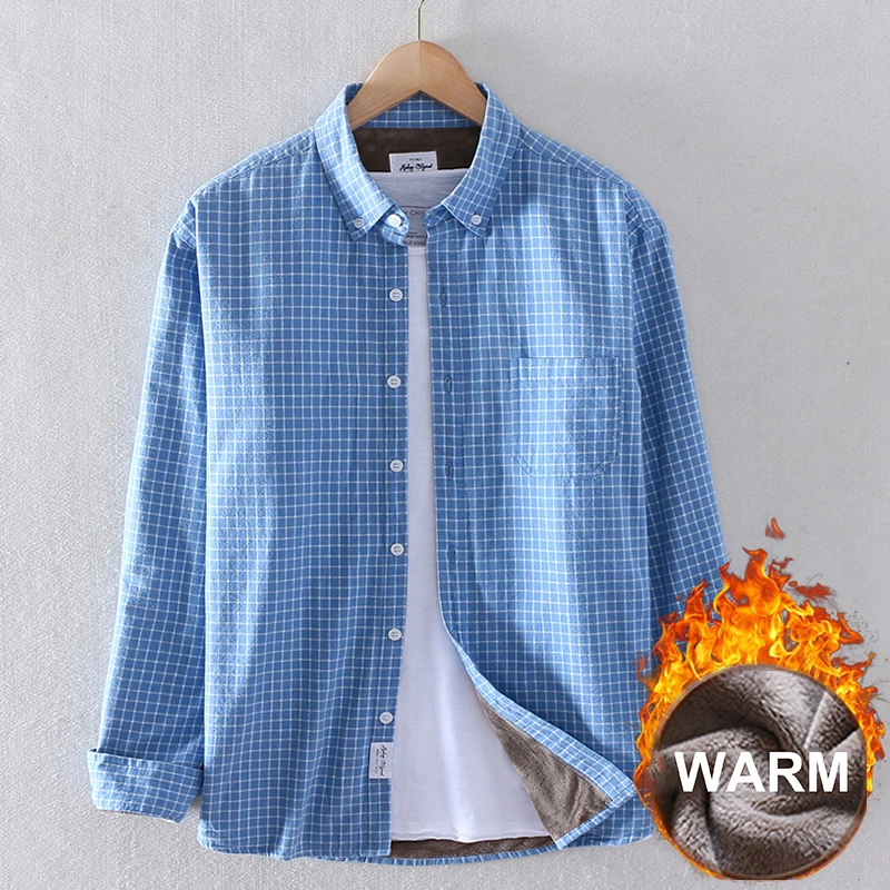 Рубашка Schinteon мужская, зимняя, теплая, 100% хлопок, Вельветовая подкладка, S-4XL