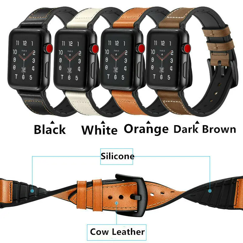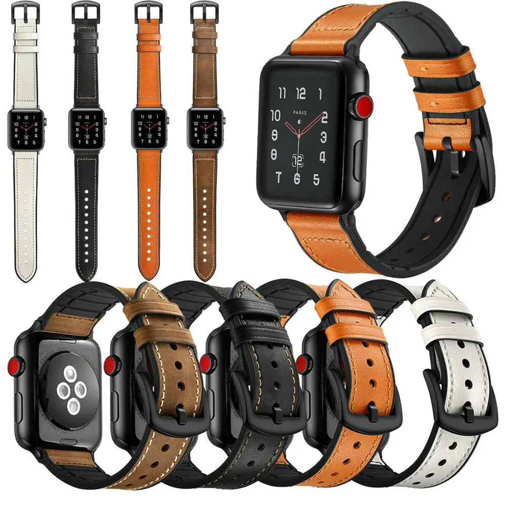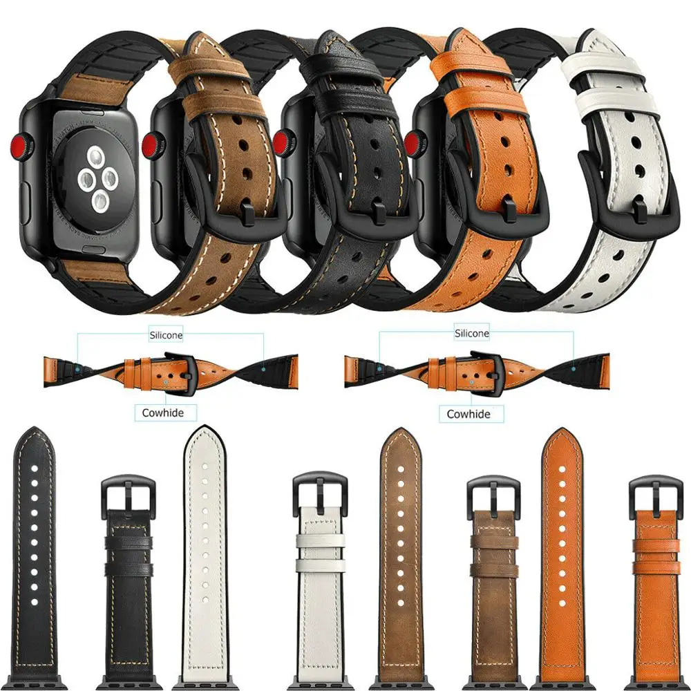Ремешок сменный из натуральной кожи и силикона для Apple Watch Series 5 4 3 2 1 38 мм 42 мм 40 мм 44 мм