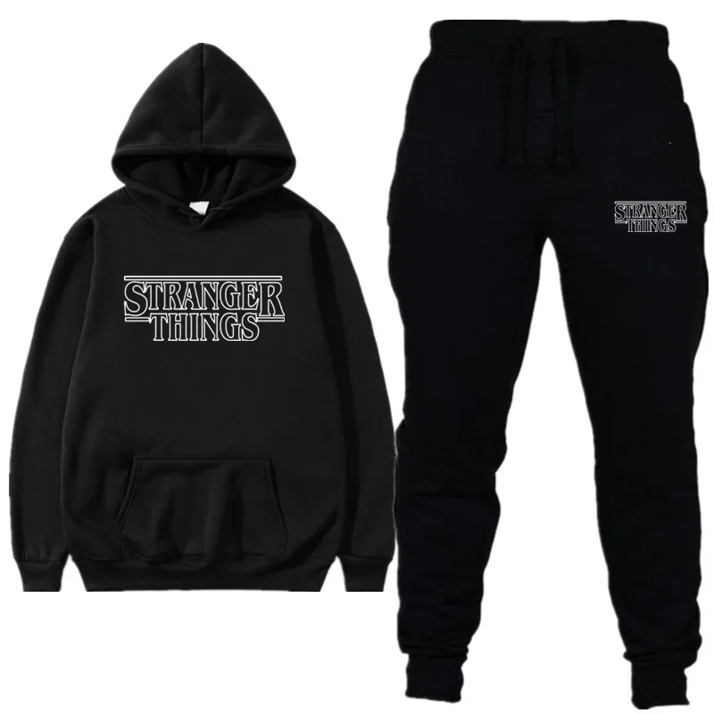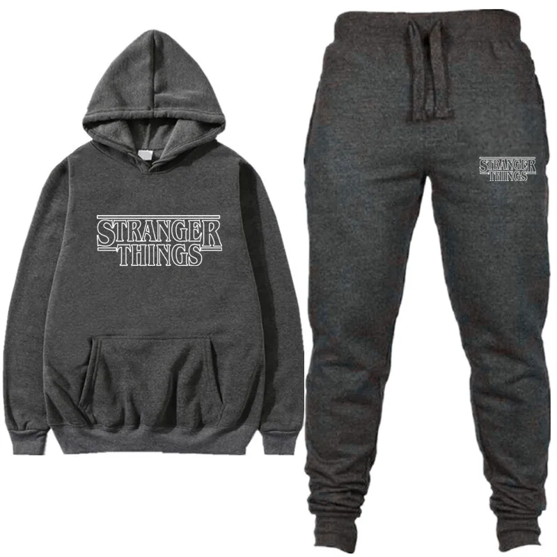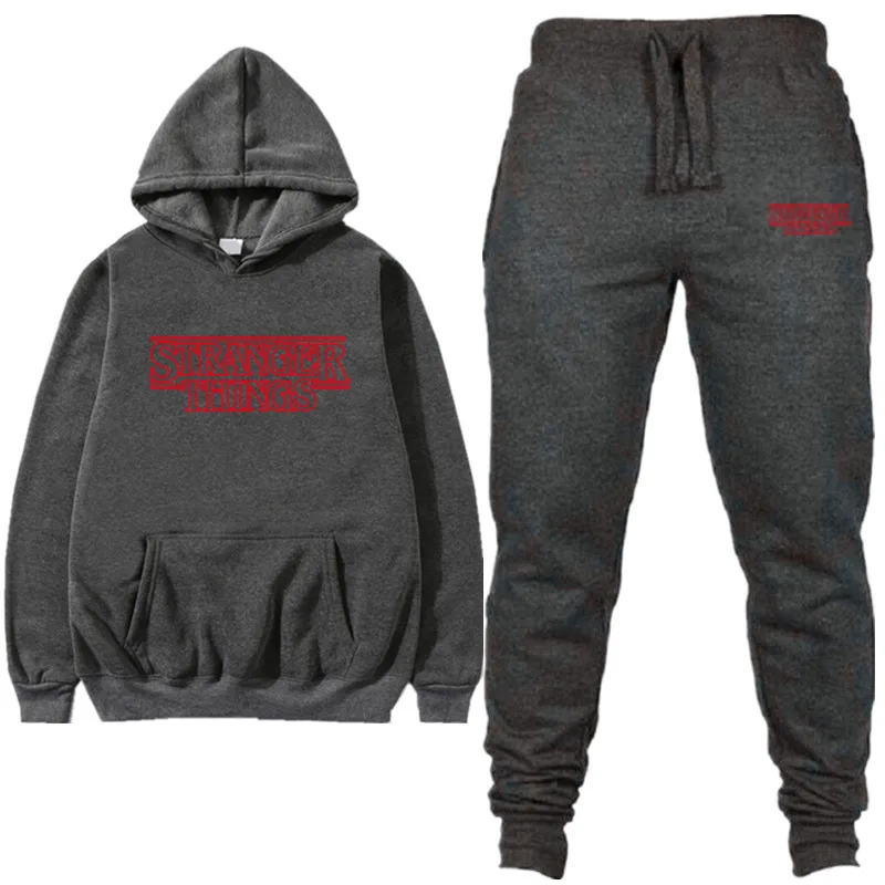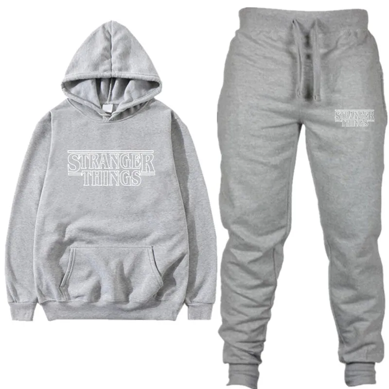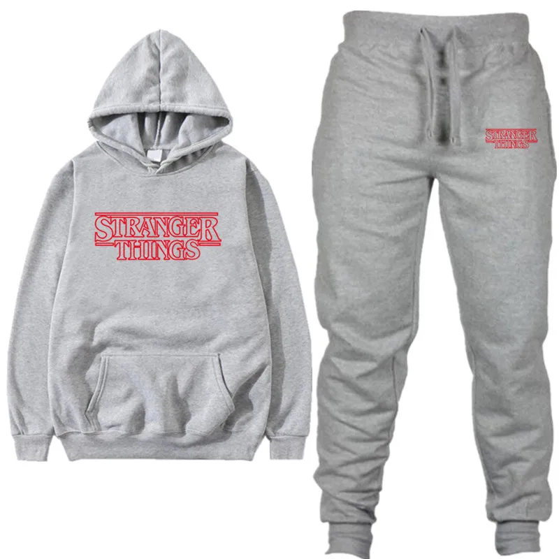 Мужскойженский спортивный костюм с принтом Stranger Things, толстовка с капюшоном + длинные штаны, комплект из двух предметов, спортивный костюм, Осень-зима 2019