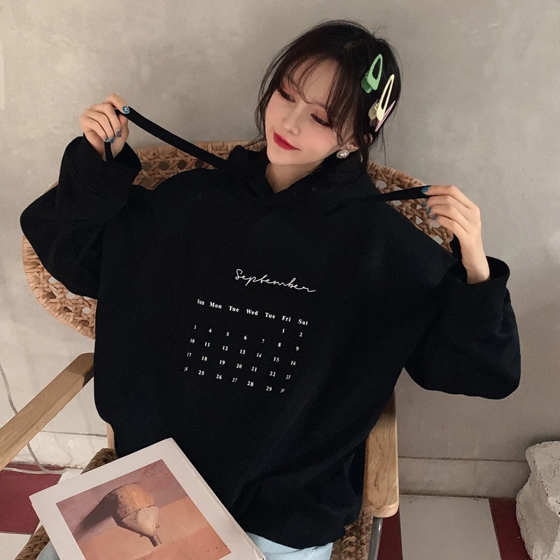 Женские толстовки с принтом Ulzzang, мягкая весенне-осенняя новая свободная тонкая женская толстовка в Корейском стиле с капюшоном, шикарная Повседневная Молодежная женская одежда