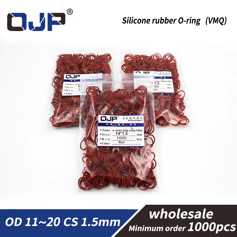 Резиновое уплотнительное кольцо VMQ OD11, 12, 13, 14, 15, 16, 17, 18, 19, 20 мм, толщина 1,5 мм, 1000 шт.партия
