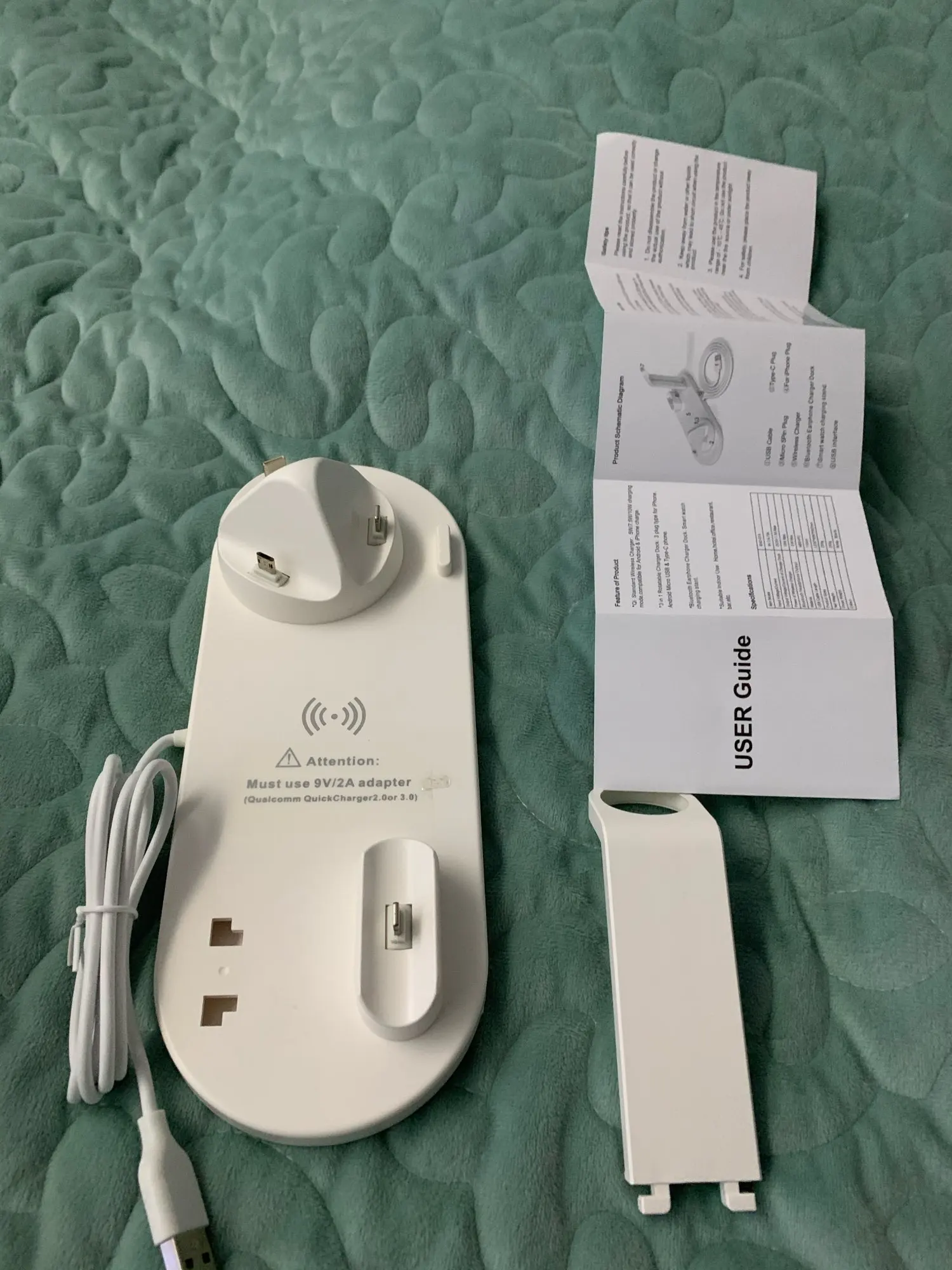 Идеальная вещь! Пришло быстро и хорошо упаковано. В комплекте только шнурок питания, что очень жалко. Отдельно пришлось покупать блок зарядки повышенной мощности. В целом данная приблуда решила мою проблему заряда 2х айфонов, наушников и часов на 100%