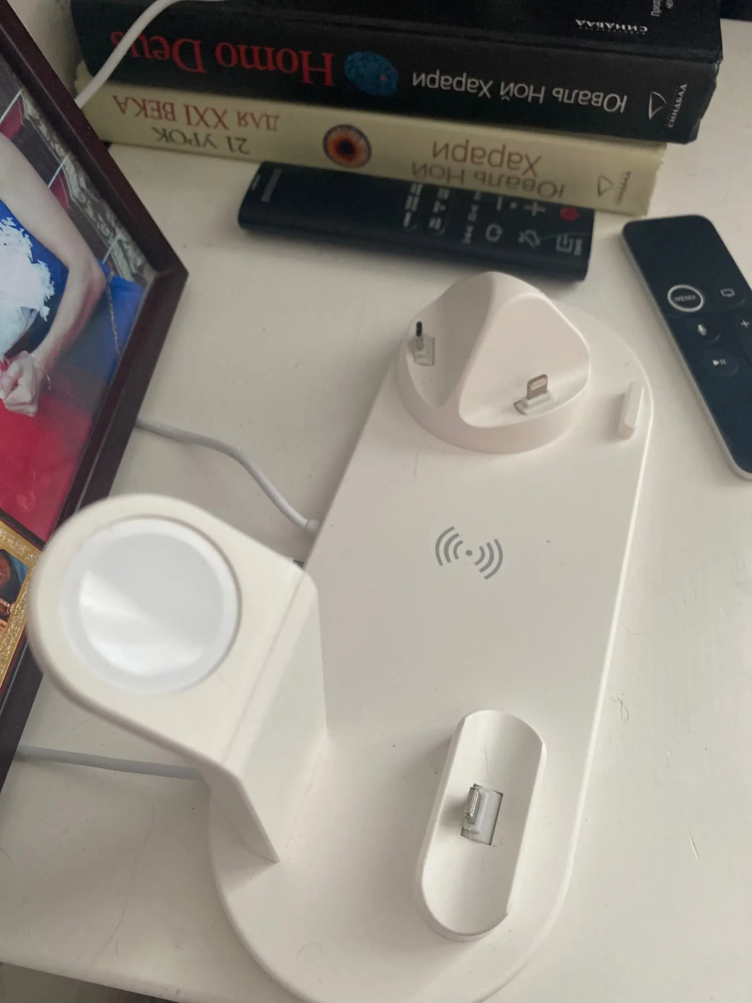 Подставка из приятного на ощупь пластика, со своей функцией справляется. Брала парню в подарок. Немного помучались с присоединением тычки для часов, чуть не сломали, но справились. Почему-то ни часы, ни телефон с первого раза не заряжаются после присоединения к зарядке. Непонятки. Может мы криворукие. Очень не довольна доставкой. Специально выбирала plus, отправку из России, доставку в пункт выдачи, чтобы получить побыстрее. В итоге 19 дней из Китая. Где тут быстрая доставка? Мне обычной почтой быстрее посылки доходят из Китая. Непонятно, чем тут plus хвастается постоянно. Подставка норм, доставка не норм.
