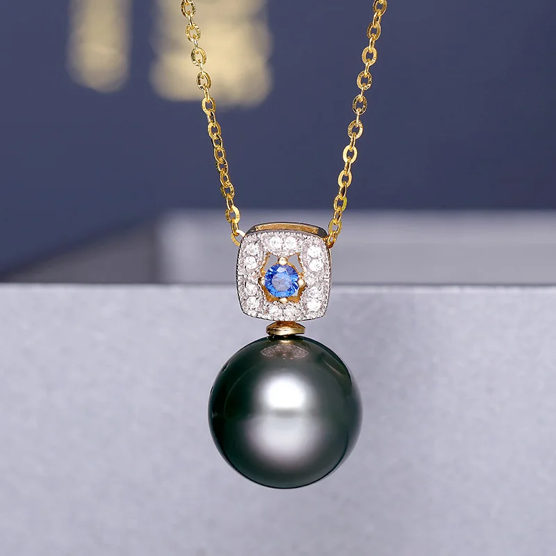 YS 18 K твердый Золотой циркон кулон 9-11 мм подлинный соленой воды культивированный Tahitian жемчуг кулон ожерелье
