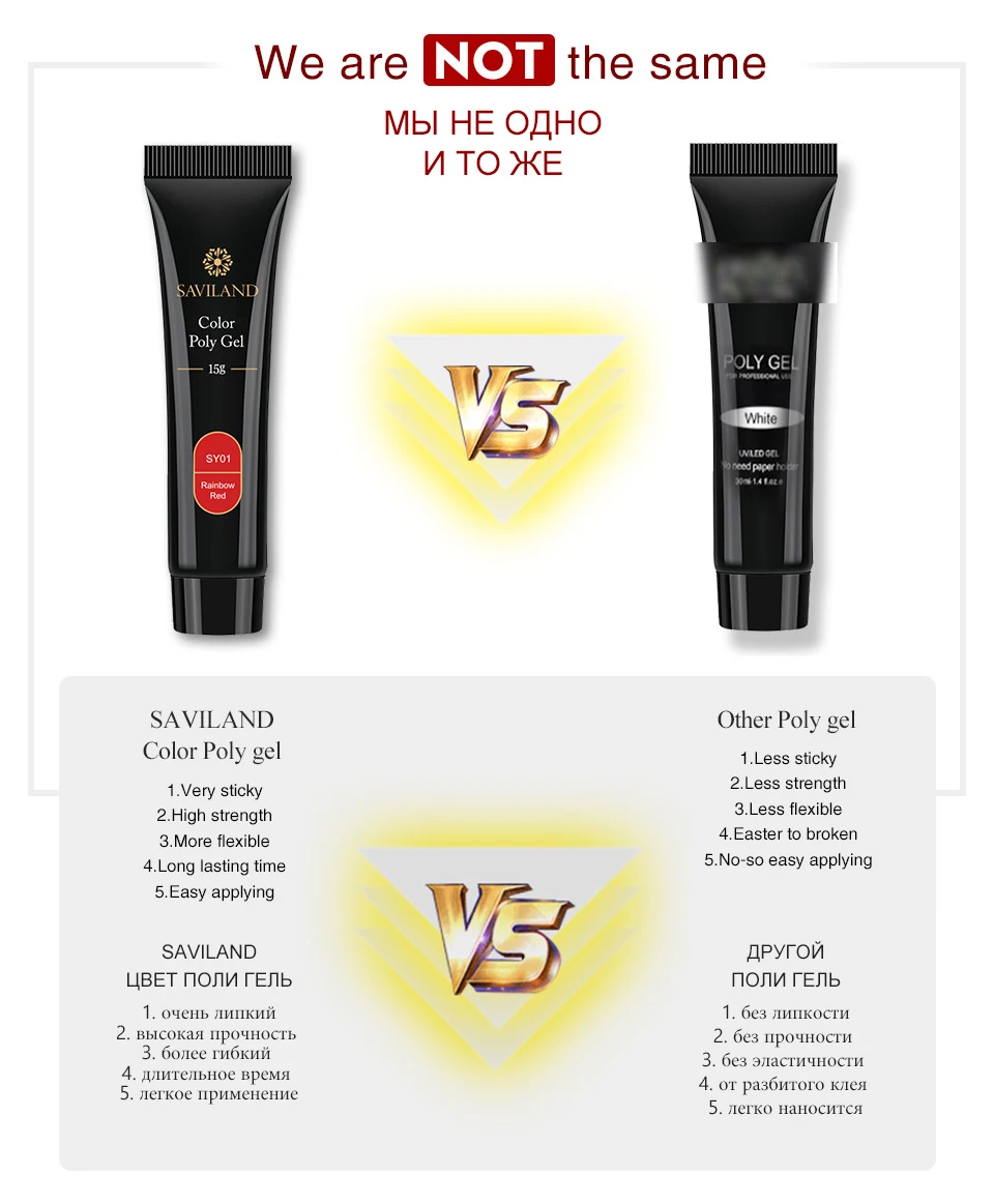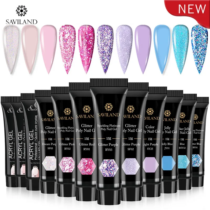 Saviland цветной полигель для наращивания ногтей, блестящий акриловый гель для ногтей, УФ-гель для наращивания, Желейный Гель-лак для маникюра