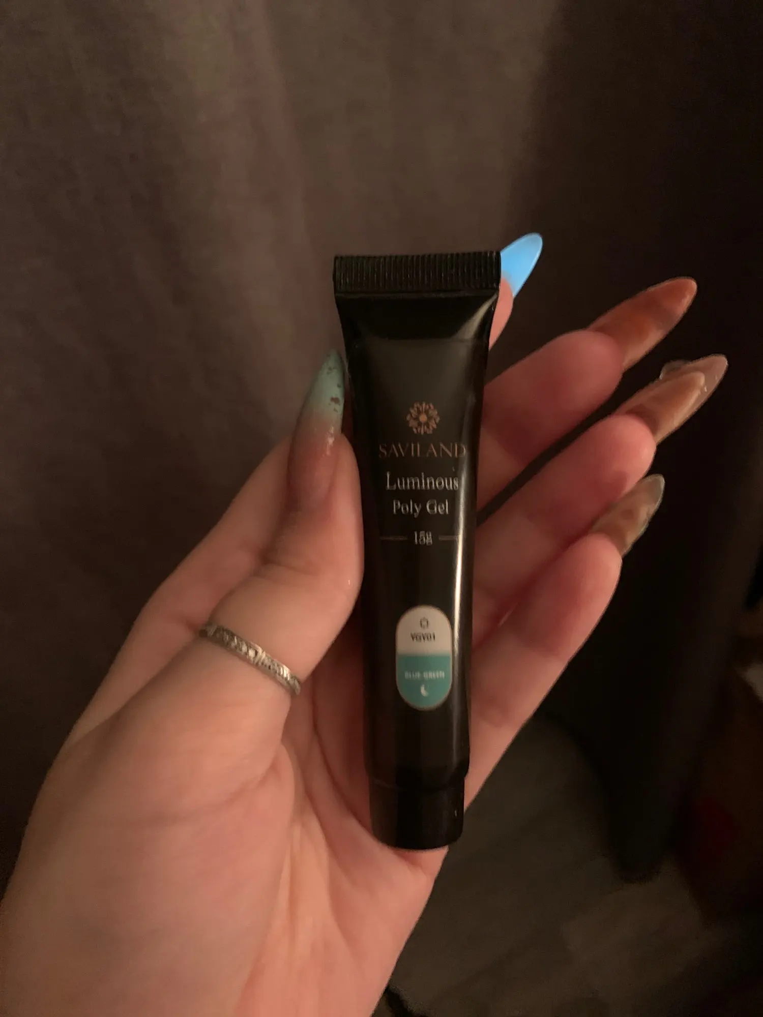 Хороший Поли гель, доставка больше месяца, обратите внимание на то что баночка всего 15 грамм это маловато, уже заказала еще на фото почему-то светится голубым, на самом деле цвет Тиффани, очень красивый. Достаточно долго светится, не так ярко, но все же светится! Я довольна!