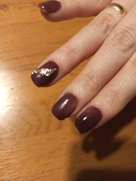 Полигель достаточно мягкий, работать с ним легко. Единственное распределить равномерно бывает сложно. Если где-то слой тоньше получается, то цвет соответственно светлее. Но надо приноровиться. А так удобно, экономит время. Цвет от фото отличается - коричневый, не коричневый, а ближе к сливовому, бордовый тоже не яркий, с блёстками крутые. Носится вроде хорошо, пока две недели без проблем.