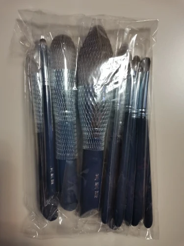 Доставка: 6 недель до Беларуси. Трек-номер отслеживался на протяжении всего пути. При транспортировке ничего не пострадало. В набор входит: 11 кисточек (каждая была в индивидуальном пакетике). Большие кисти находились в сетрчках. Как использовать каждую кисть смотрите на картинки ниже. У продавца всё очень наглядно показано в описании товара. Ворс плотный, в меру упругий, не линяет.