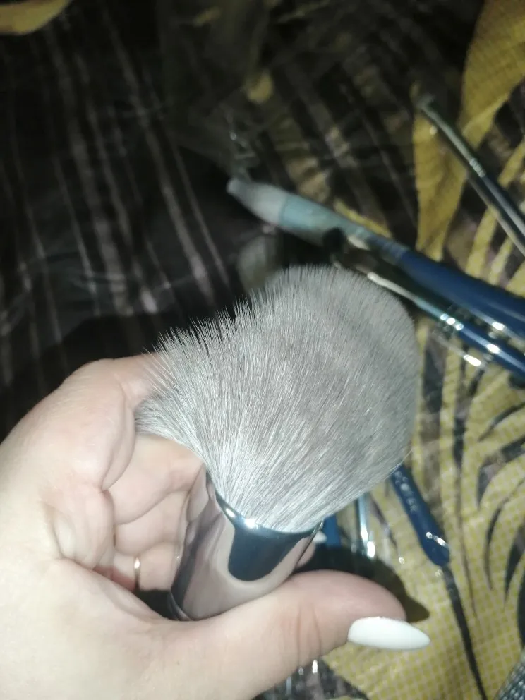 Кисти очень хорошие пришли,к сожалению одна пришла поломанная,но это уже минус почте России.Сама ручка очень хорошая,ворс приятный к лицу,очень мягкий,правда есть отдушка.Пришло ровно в срок,посылка отслеживалась