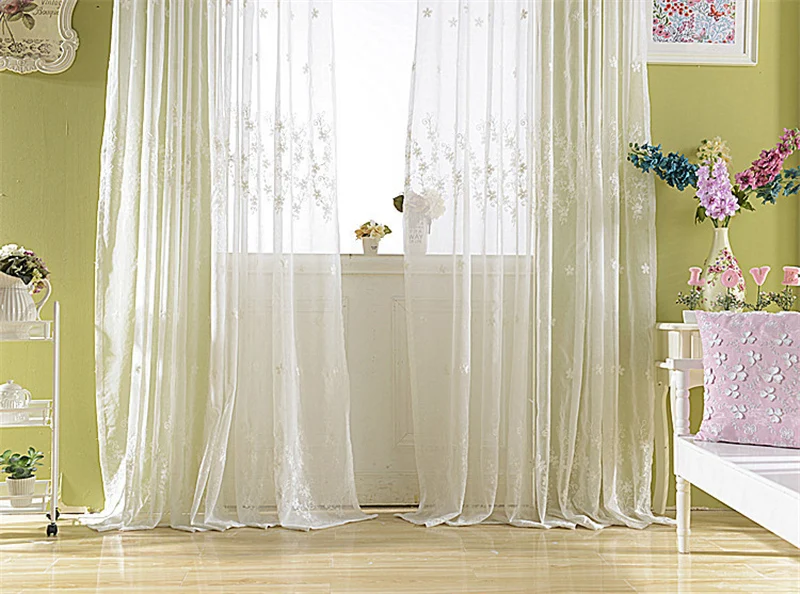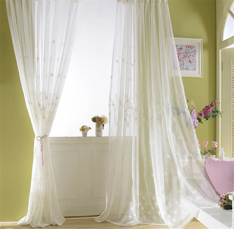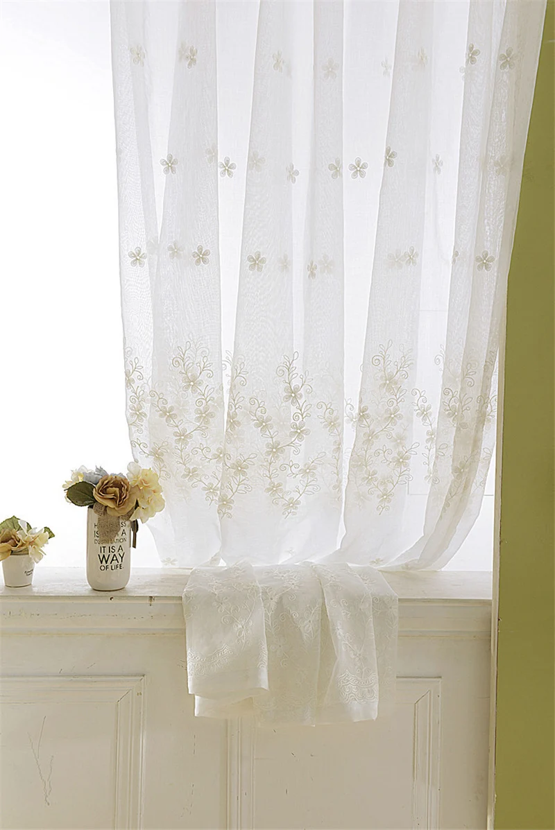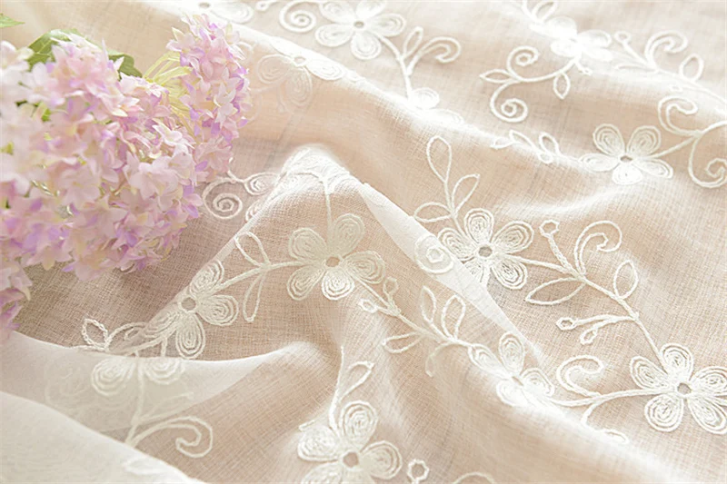 Белый Цветочный вышитый тюль для гостиной, белая прозрачная вуаль в форме сливы, вышитые оконные шторы, Тюлевая пряжа X-pj0015-17 #40