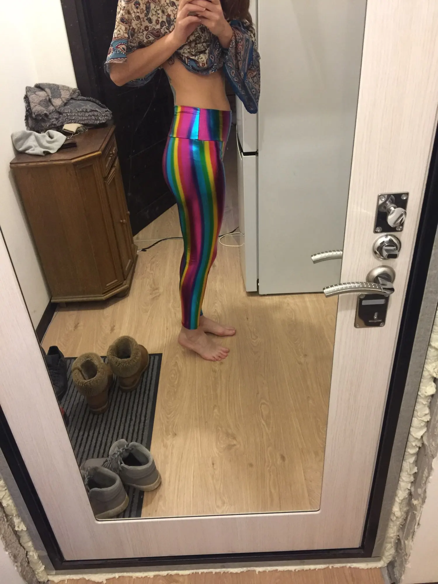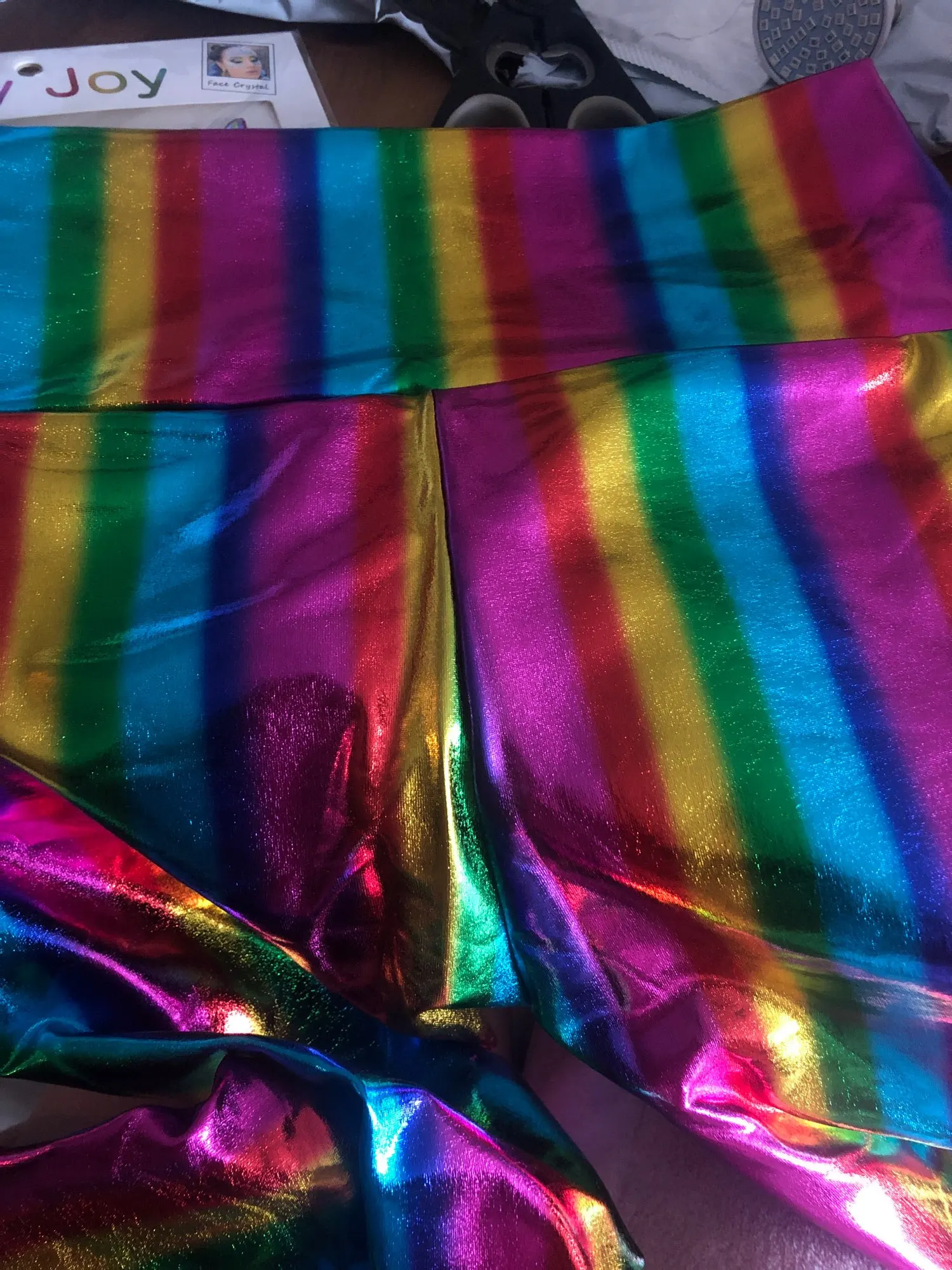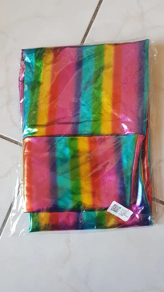 Блестящая жидкая ткань с эффектом влаги, разноцветные леггинсы с рисунком в Вертикальную Полоску с голограммой металлик и радуги.