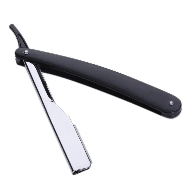 Бритва Парикмахерская из нержавеющей стали с прямым лезвием, складной нож для бритья бровей, инструмент для стрижки белого и черного цветов