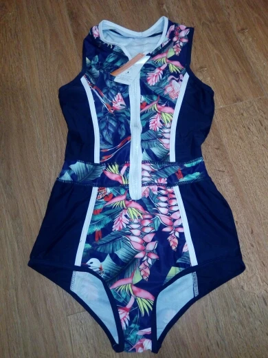 Заказ дошёл быстро. Купальник хороший, качество отличное. Единственное что колится немного молния внизу. Я заказывала размер s, он впритык. Но я работаю в бассейне э, в воде, по много часов и поэтому купальники довольно быстро растягиваются. Мой рост 160,вес около 57