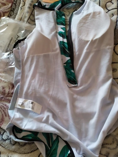 Пришёл достаточно быстро. На моей фигуре с широкой спиной и животом (100-80-100), смотрится ничего, пойдет!). Но еле надела , немного тянет сверху, может растянется. Рост 167. При росте 170, может быть коротковат. (если только на совсем стройняшку)). Передняя часть внутри имеет второй мелкосетчатый слой (живот не замерзнет)). Чашечки есть, вынимаются. Цвет в реальности более темней, цвета зелëнки что ли у листьев. На пакете есть телефоны, кьюар код. Посмотрим, как будет в носке. А так купальник понравился.