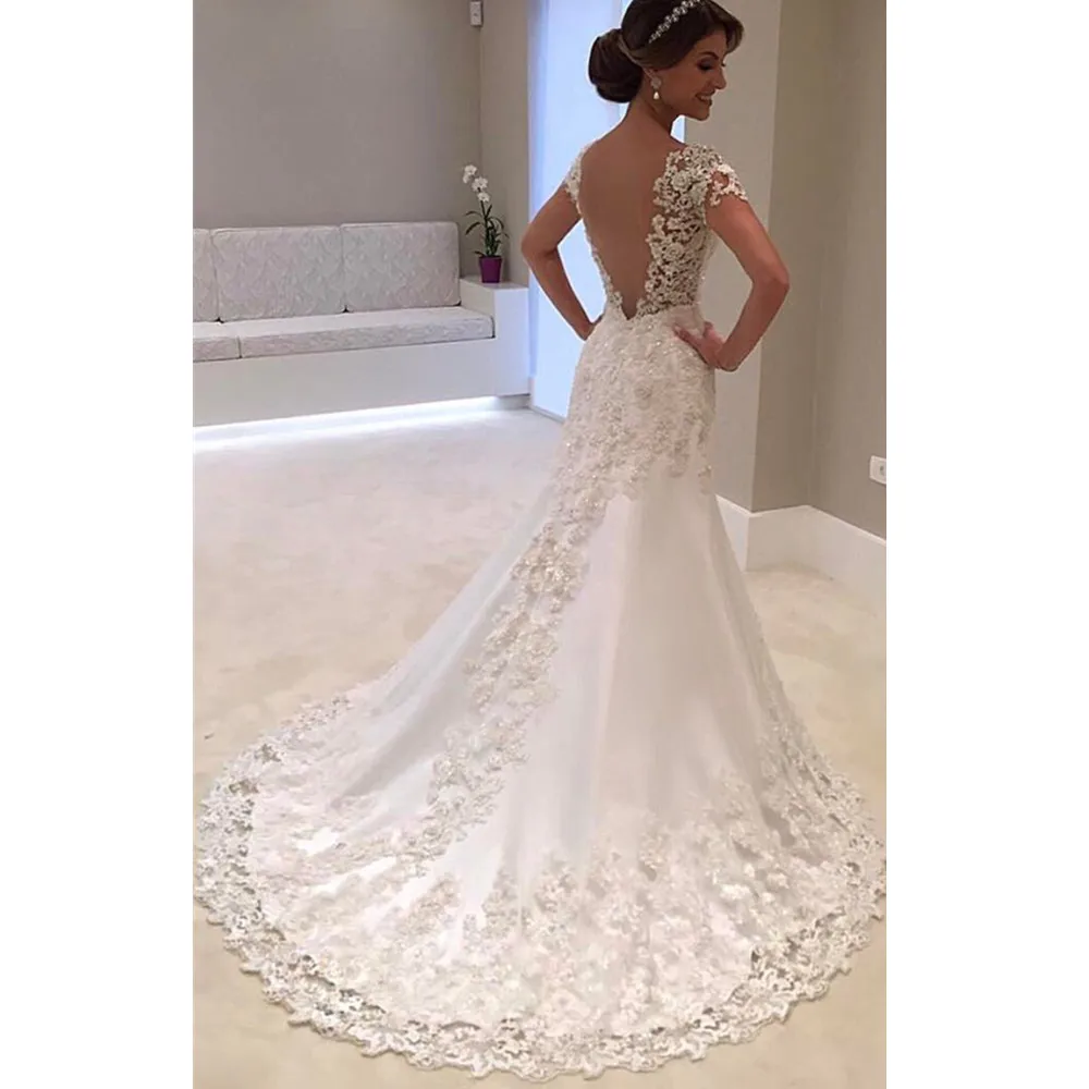 Романтическое винтажное свадебное платье с открытой спиной, с кристаллами и бусинами, кружевное платье-русалка, длинное очаровательное свадебное платье принцессы