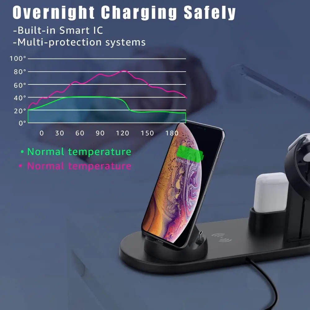 Заряд вперед: зарядная станция использует самые современные автоматические технологии управления. Встроенные гарантии от перезарядки, перегрузки по току и перенапряжения, контроля температуры, обнаружения инородных предметов. Защищает ваше устройство от повреждения от перезарядки.