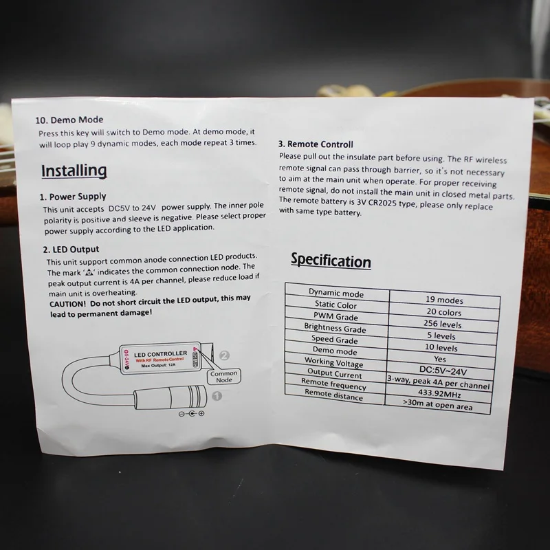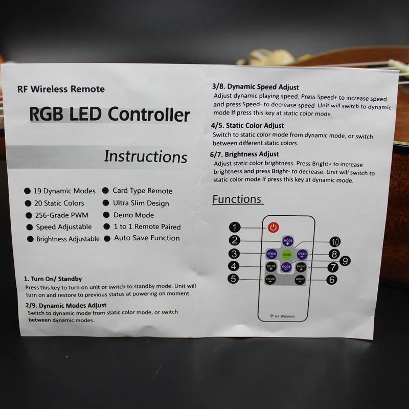 Примечание: поскольку безопасность транспортировки, товар поставляется без аккумулятора.Тип батареи: CR2025 или CR2032 (не входит в комплект) ПараметрыТип товара: RF RGB Беспроводной светодиодный пульт дистанционного управленияIs_customized: ДаХарактеристики: Беспроводной светодиодный пульт дистанционного управления RF RGBСертификация: CCC,CE,FCC,RoHSУдаленное расстояние: 30 мЦвет: RGBНапряжение: 5-24 В постоянного токаМатериал: пластикВес: 40 г