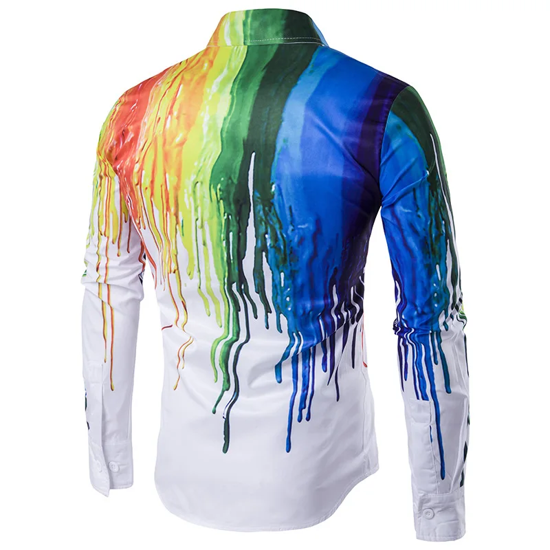 Модная рубашка с принтом брызг чернилами для мужчин, приталенная повседневная мужская рубашка с длинными рукавами, рубашки для ночного клуба, рубашка-смокинг Camisa Masculina