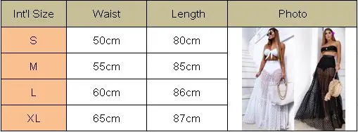 Сексуальная Женская сетчатая юбка в горошек, с высокой талией, прозрачная, длинная Макси-юбка, Пляжная накидка, лето длинные юбки для дам