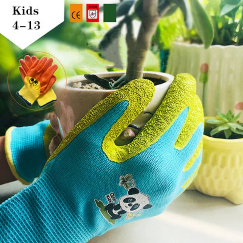 Перчатки садовые для детей 4-13 лет латексные нейлоновые защитные непрокалывающие водостойкие складки для посадки ладоней на открытом воздухе
