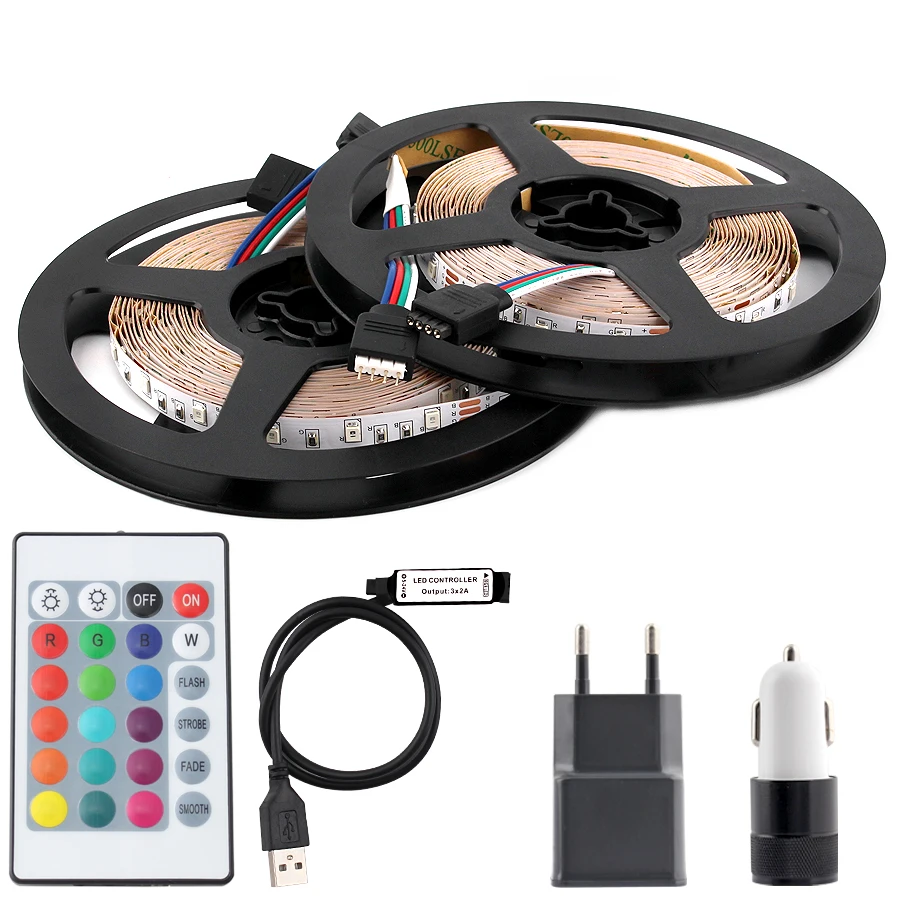 Светодиодная ленсветильник RGB для подсветки телевизора, с контроллером на 3 или 24 клавиши
