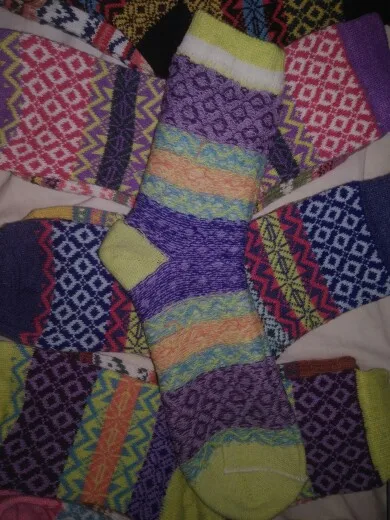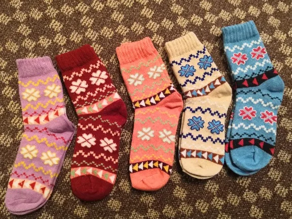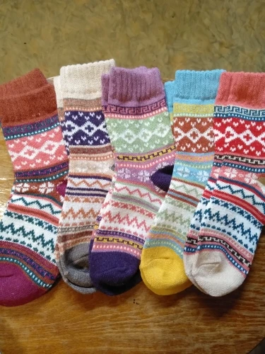 Спасибо продавцу за красивые, теплые носки! В прохладные дни они будут согревать моих родных девчонок! В них можно и по дому, и в кроссовки одеть в прохладные дни, и даже в ботинки демисезонные. В общем будет ногам тепло и комфортно! Цвета, узоры радуют глаз и создают атмосферу комфорта. Доставка до Ростова-на-Дону 12 дней. Продавца рекомендую, можно ещё заказывать. АлиЭкспресс спасибо!