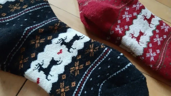 в состав намешена синтетика. которые с узорами под новый год-огонь, прям огнище носки, видно, что шерсть, а эти скрипят, как твари. не однозначно, спорно за такие деньги
